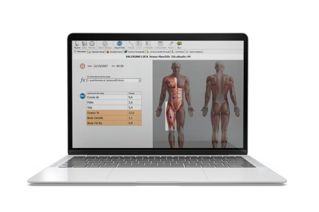 • possibilità di inserire i dati plicometrici per completare la valutazione della composizione corporea del paziente